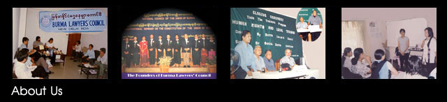 "By vigorously opposing all unjust and oppressive laws, and by helping restore the principle of the Rule of Law, the Burma Lawyers' Council aims to contribute to the transformation of Burma where all the citizens enjoy the equal protection of law under the democratic federal constitution which will guarantee fundamentals of human rights."